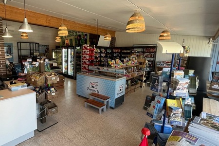 I butikken finder du et godt udvalg af dagligvarer samt naturligvis drikkevarer, is og andre lækkerier.
